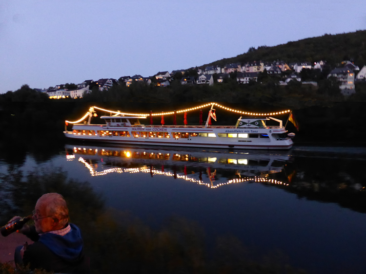 UK and Europe Roadtrip - CochemIt was time to head back to our overnight stop beside the River Mosel and relax. Only one euro to park here for overnight stays and what a view! A drink by the river was lovely. Select the photo below to see more of this area as night fell in Cochem. Previous | Album | Next |