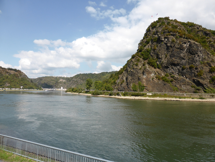 UK and Europe Roadtrip - Middle RhineThe next thing that caught our eye was The Loreley, a steep 132m high slate rock that has many legends attached to it. A beautiful maiden threw herself into the Rhine despairing over a faithless lover or a beautiful siren whose song enchanted passing sailors. This is the narrowest and deepest section of the Rhine. Select the photo below to see the nearby town of Kaub. Previous | Album | Next |