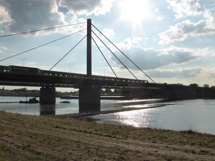 UK and Europe Roadtrip - KarlsruheThe Maxau Rhine Bridges connect Karlsruhe on one side with Wörth on the other. Our free camp was a parking area beside the Rhine River near the bridge which was built around 1966. You can see one of the long cargo boats going under the bridge. The first bridge built at this site was in 1840. Select the photo below to see the rail bridge on the other side. Previous | Album | Next |