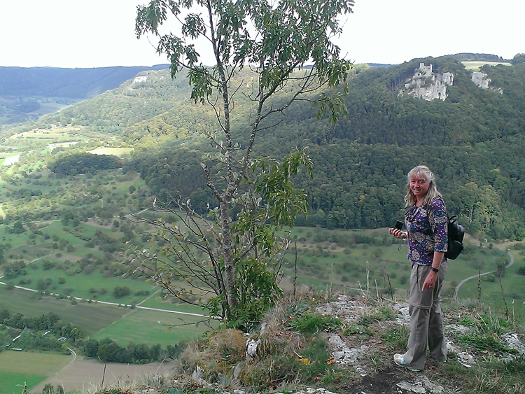UK and Europe Roadtrip - NeidlingenWe headed back to the other side of the valley where we would camp the night at Drittenwald picnic area. It was part of the Wanderparkplatz (system of trail head car parks) called Bahnhöfle. They had a large fireplace, a couple of other campers and various walking trails. There was still plenty of time to explore. From here you can see straight across to Reussenstein Castle ruins. Select the photo below to see the views along the short walk that followed the ridgeline. Previous | Album | Next |