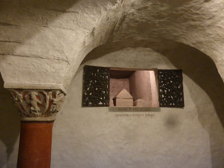 UK and Europe Roadtrip - Constance CathedralThis crypt is thought to have been part of the first cathedral built in Constance in the 700s. The relics of St Pelagius were brought here from Rome in the mid 800s and a burial chamer was erected to hold them. St Conrad died around 975 and his tomb was also incorporated in the crypt. Select the photo below to see some of the religious icons that are on display here including a 2m high gilded copperplate of Christ that dates back to the 900s. Previous | Album | Next |