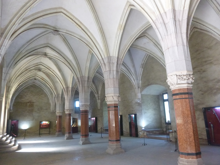 UK and Europe Roadtrip - Corvins CastleWe climbed a circular stairway to this massive room which is called the Diet Hall or Council Hall. It was mostly used for ceremonies but also as a courthouse. The other large hall is called the Knights Hall and was used mainly for feasts. Select the photo below to see more. Previous | Album | Next |