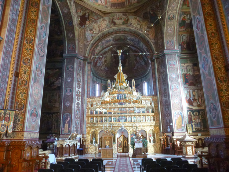UK and Europe Roadtrip - Ghelari BasilicaA few months before we arrived at the Basilica they held a very special Holy Mass here. It was celebrated by the Bishop of CaransebeČ™, the Bishop of Deva and Hunedoara, and the Bishop of Covasna and Harghita, surrounded by a council of priests and deacons. All were dressed in most impressive regalia (we saw a news article). Select the photo below to see more inside. Previous | Album | Next |