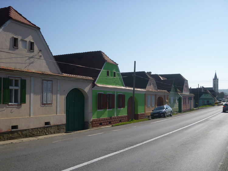 UK and Europe Roadtrip - Sibiu CountyWe passed fields being harvested with horse and plough and people following to bag the potatoes. It was not far to the spa town of Ocna Sibiuliu in Sibui County, known for its numerous salt lakes. One of the lakes has a higher concentration of salt than the Dead Sea. These colourfully painted houses were on the outskirts of town. Select the photo below to see more. Previous | Album | Next |