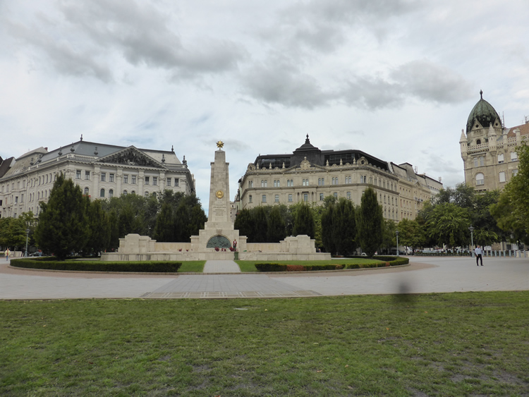 UK and Europe Roadtrip - BudapestRelics of the communist era are still visible around Budapest today. We passed the Budapest National Bank (left) built around 1905, Freedom Palace built around 1901 with the Soviet Liberation Monument in Szabadság Square in front of them. Select the photo below to see more from our walk around Budapest. Previous | Album | Next |