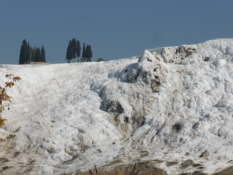 UK and Europe Roadtrip - PamukkaleNext morning we had coffee sitting outside the motorhome watching some hang gliders taking off from the hills around Pamukkale. Water from the springs runs passed us in a small creek. This is a must see destination! Select the photo below to see a calcified water channel. Previous | Album | Next |
