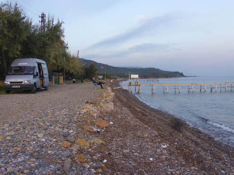 UK and Europe Roadtrip - Cicleki BeachDid I mention that we are getting sick of Turkish music on the radio?! Cicleki Beach has a rocky shoreline but this free camp has an amazing view! We spoke to locals who assured us it was OK to stay here. It was nice to watch 2 pods of dolphins swim past. Select the photo below to see our beautiful sunset. Previous | Album | Next |