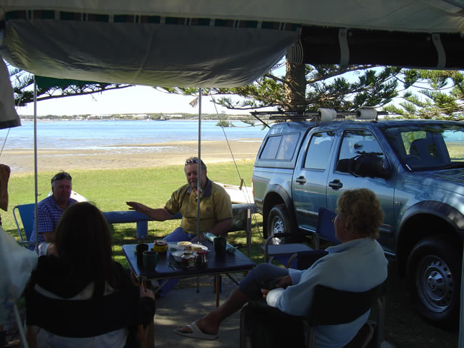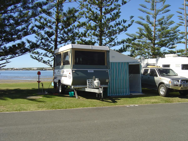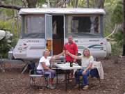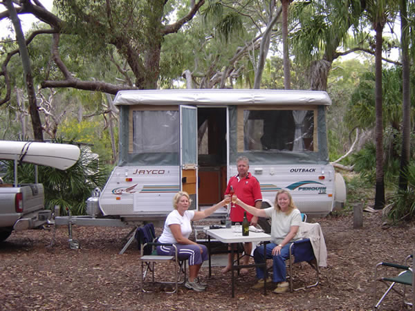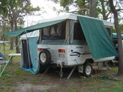 Our Comfort Caravan 2020 - ever!Our last trip with the Jayco Penguin (see below) was to Tasmania in end December 2019 - February 2020. For our next lot of adventures we wanted a full offroad caravan with toilet and shower onboard but still small enough to park easily. We bought a Comfort 16 footer which we are very happy with. The 12 month trip around Australia in 2024 proved it was the right choice. It survived all of the worst corrugated roads, drove over dunes to camp on beaches and a lot more. PHOTOS COMING... Camper Trailer 2005 - 2020For travel within Australia we have chosen a 4WD towing a Jayco Penguin Caravan (popup camper). We are very happy with our caravan purchase and the annexe is very quick to put up. We considered putting bike racks on the van although Jayco don't recommend putting the bikes on the back of the van as it can effect the balance of weight. On a recent trip to Bundaberg we stopped and spoke to another Jayco Offroader who had welded a special piece in front of the Gas Bottle/Water Bottle holder to accommodate the tow ball for the bike rack. Looked like a good idea. A relative made it for him - wished we'd got his name. We decided it would be much better to have the bike rack on the back of the van as the bikes would get less damage when driving and would be out of our way. This meant moving the spare tyre somewhere else. We bought and fitted a 2nd hand 'under car spare wheel bracket' to the underside of the van that holds the spare tyre and attached the bike carrying bracket where the tyre was. Now we just need to make some sort of cover to keep the bikes clean when travelling on those dusty roads. We need to be aware of the weight shift and compensate with extra weight to the rear of the axle when packing the inside of the van. Click on the photos below for a larger view. We have added a few hooks and hanging pockets in various places inside the van plus a drop down mosquito screen for the door for quick stops. When you wind the van up for a lunch stop you don't want to put the top half of the door on and in some places at certain times of the year flies are a major problem eg Alice Springs in September. There is always a space problem in vans that popup from halfway as cupboard space is limited. We have bought some fittings for inside the cupboards to allow us to make the most of the space and stack the food, crockery and cookware better for offroad travel. That anti-slip matting is great. To allow for extra shade from the heat and protection from rain we have had two canvas awnings made up for the van - see the equipment page for photos and info on that. Once we stop we find that bringing the crockery up above waist height is handy and more accessible on our tray and stacker. The van's stove has 3 gas burners and 1 electric hotplate. The van's fridge runs on gas, 240 volt or 12 volt battery and that battery recharges when the car runs. The sink connects to town water via a hose or we can use the pump from the van's water tanks. We are pretty well covered for off-road holidays. We intend to install a 12 volt power outlet in the van also for a variety of other uses when we are in areas without electricity e.g. shower pump, flouro light. Our Camper Trailer (popup caravan)We picked it up on a Saturday morning and tried it out straight away with a couple of nights at Burrum Point National Park campground. It is just south of Woodgate which is just south of Bundaberg for those of you who don't know your way around Queensland. We LOVED it! The track in requires 4WD so we were able to give our offroad camper a bit of a tryout. The campsite itself caters for about 15 sites and is on the beach at the mouth of the Burrum River. It is good for fishing and boating although we did little of that this time around. Shirl & Noel came along with their tent and camped with us. They wanted to check out the new van. We had a great weekend and will probably come back here again - Noel will bring the boat next time. Have a look at just a few of the Burrum Photos. We didn't get to try the annexe out until we went to the Broadwater Caravan Park. You will notice we had the new 4WD by then and it has the canopy and roof racks fitted. Have a look at just a few of the Southport Photos OR click on any of these to see the enlarged versions or inside the van. Caravan or Camper Trailer or Tent Trailer? - the leadup to the purchaseKaren & Gary and Cath & Pete went to the Caravan & Camping show and we were impressed by the Jayco Outback on a show special. We had looked at various RVs and camper trailers. We also decided to look out for second hand caravans and campers as we know a lot of people buy them, do one trip and then sell them. Then ... We found one! On our way back from a holiday to Lake Monduran we called in at Bundaberg to the Jayco Dealer there - Warburton Caravans - where we had seen a number of 2nd hand Camper Trailers on a previous trip through Bundaberg. This time they had exactly what we were after - a Jayco Penguin 13 in the Camper Trailer Outback range. It was less than 12 months old - the previous owners (retired couple) having decided they loved travelling and camping so much they wanted to do it for 12 months in a larger popup style of caravan. They traded up and we were lucky enough to purchase what we had been looking for at a better price than a new camper trailer of the same type. They had looked after it well so we are more than happy with our purchase. The bonus was that it came with a full annexe in case we ever want to take the kids along. What requirements did we have for the van?