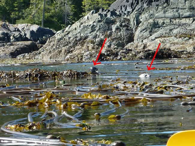 A mother and baby seal or sealion (not sure which) were swimming in amongst the kelp that floated close to the islands. They disappear under the water as we get closer.