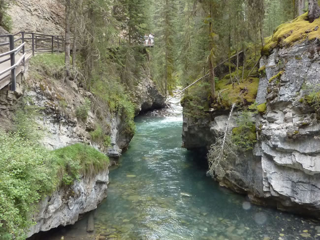 Calgary to Banff - Alberta CanadaJohnston Canyon is only a 30 minute drive from Banff up the main highway so easy to access. If we didn't know how cold this crystal clear water was we would have been tempted to wade into it. Even in summer swimming in the canyon is a pretty chilly experience. Previous | Album | Next |