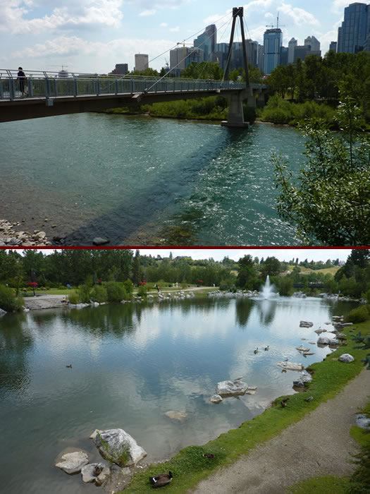 Calgary to Banff - Alberta CanadaOur walking tour around Calgary included visiting Prince's Island Park which is on an island in the middle of the Bow River. We saw plenty of Canadian Geese and Mallard Ducks. We watched a Shakespeare play rehersal while eating lunch in the park. A nice way to spend a day. Previous | Album | Next |