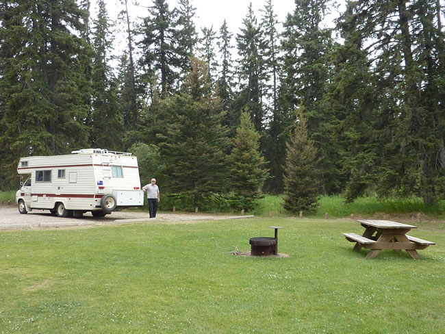 Calgary to Edmonton, AlbertaAfter stocking up the RV we headed north skirting around Calgary on some of the lesser highways. Our first stop was Red Lodge Provincial Park. It was a nice campground with a creek running through the middle of it. Yes, that is the 'Empress' RV on one of her good days! We had lunch and continued on. Select the photo below to see more. Previous | Album | Next |