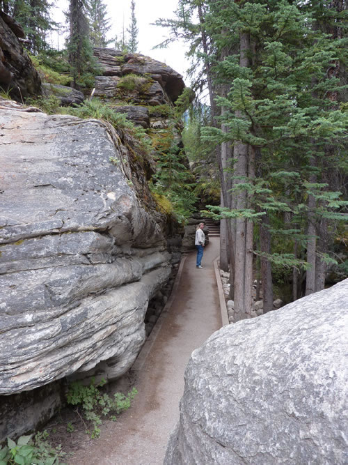 Icefields Parkway from JasperOver many years the waterfall has moved back and forth searching for the path of least resistance. This part of the walk goes through one of the old abandoned channels. This leads to viewpoints at the bottom of the main canyon and to the river bank beyond. Previous | Album | Next |