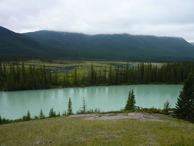 Banff National Park, AlbertaWe stopped at a look out with Mt Bourgeau in the background ... apparently! The information board described the view on a clear day. It was still a lovely view even today. Select the photo to see what was behind the clouds according to the sign! Previous | Album | Next |