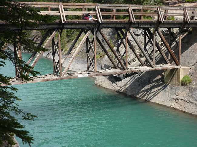 Banff National Park, AlbertaThe track crossed Stewart Canyon at this bridge then turns left and follows the Cascade River for another kilometre OR if you have plenty of time you can continue straight ahead for a 20km hike around the shoreline of Minnewanka Lake. Previous | Album | Next |
