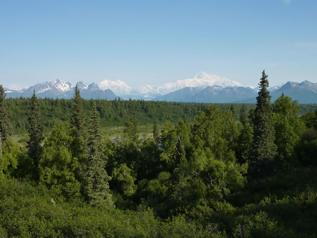 Alaska and Canada HolidayWe were pretty lucky, as we found out later, to get such clear photos of Mt McKinlay. It is usually covered with clouds and/or haze from bush fires. We stopped at the various vantage points as well as Byers Lake and Denali State Forest Visitor Centre. Previous | Album | Next |
