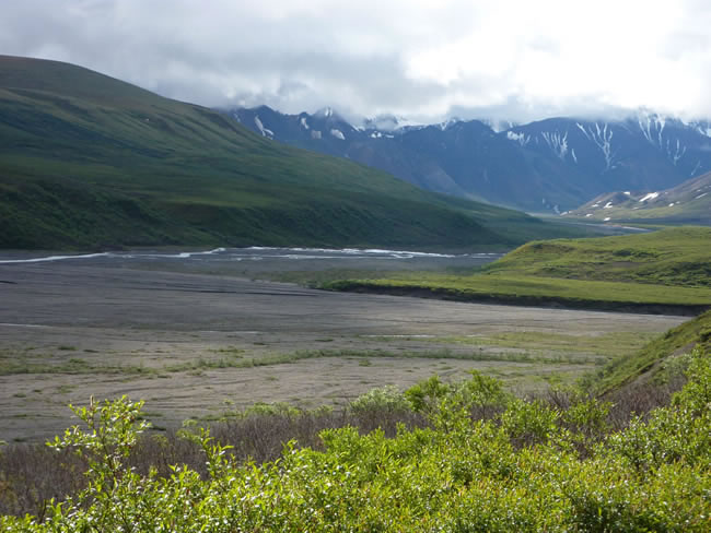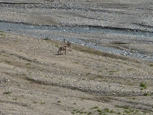 Alaska and Canada HolidayThere was a herd of Caribou grazing along the river bed. Can you see them? Have a look at the Caribou up close. Riding the bus you are sitting higher and there are many pairs of eyes watching which gives you a good chance of spotting wildlife. Previous | Album | Next |