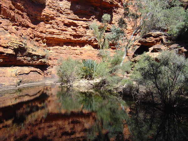 Roadtrip - Part 3, Kings Canyon, MacDonnell Range Northern TerritoryIt is a real surprise when you come into The Garden of Eden. It is very pretty. Some of the tourists from overseas went swimming in the pools but it was too cold in the water for us the day we were there. Previous | Album | Next |