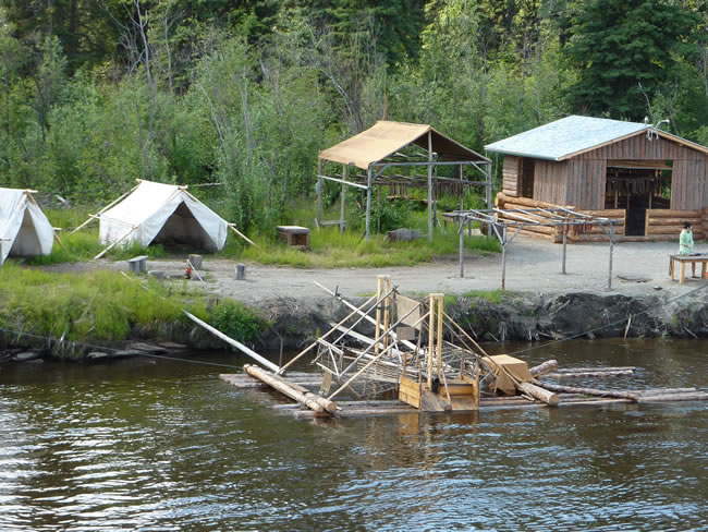 Fairbanks and Arctic Circle, AlaskaThis is a fish camp and is the summer home for Interior Athabascan Indians. Family elders work side by side with younger generations, passing down their history and culture. The fishwheel scoops the fish from the river as it is turned by the current. They then fillet them and smoke them to keep for winter. You can see them hanging in the shed behind. Previous | Album | Next |