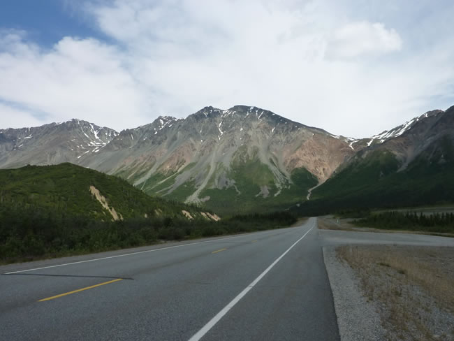 Fairbanks to Valdez, Alaska Canada HolidayThis is looking back at the Alaska Range after coming through Isabel Pass. We have been driving within sight of this range since Anchorage but now we leave it behind as we head further south. Previous | Album | Next |