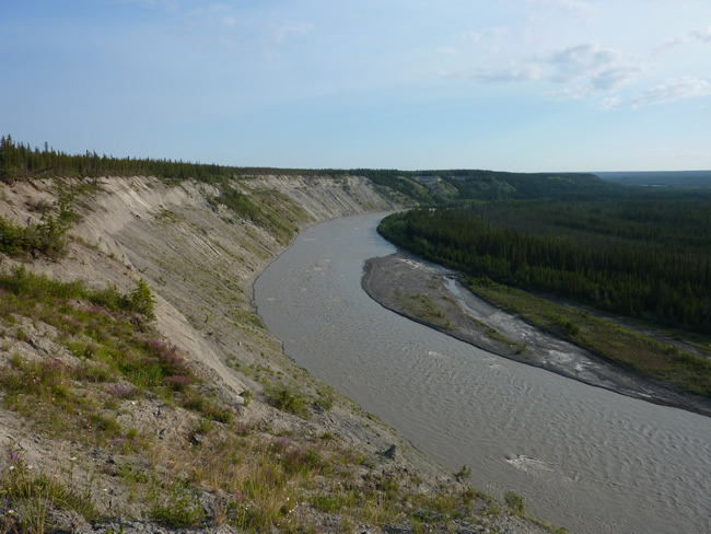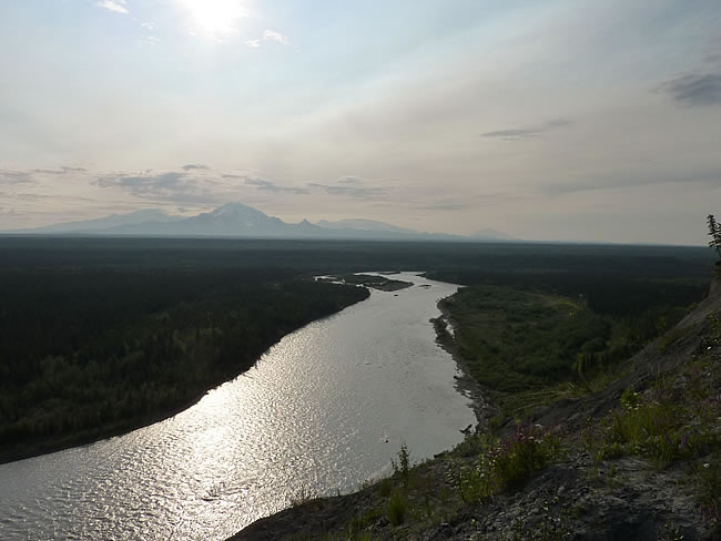 Fairbanks to Valdez, Alaska Canada HolidayOn the road again next morning, we spotted a mother grizzly bear and 3 cubs. They ducked into the bush at the side of the road as we approached in the car. We filled up with gas at Glennallen then spotted a moose in the pond just 200m out of town. A few miles further south we stopped at a rest area (a couple of RVs still parked at this free camp) to take in the view. We could see 6 working fishwheels on the Copper River south from here so it must mean the salmon had started to run. Only the native Alaskans are allowed to catch fish using this method. Mt Wrangell in the distance was shrouded in cloud but we could make out the smoke rising from the volcano's vent. It is Alaska's largest active volcano at 14163 feet. Have a look at the view up the copper river to the north as well. Previous | Album | Next |