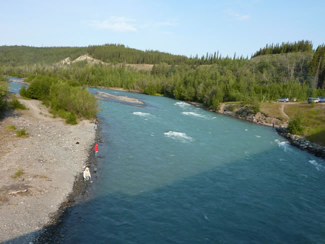 Fairbanks to Valdez, Alaska Canada HolidayWe stopped at the Visitor Center 14 miles south of Glennallen. It backs onto the largest National Park in Alaska which is undeveloped with few roads. The visitor centre was definitely worth a stop and as per other visitor centres had free internet access so we could check our emails. On teh road again we crossed the Klutina River which is a beautiful, milky, turquoise-blue but clear enough for fish to see flies and bait. This river flows into the Copper River as does the Gulkana River. The Chinook (King Salmon) and Sockeye (Red Salmon) are starting to bite so we saw crowds of fishermen lining the banks of the many rivers we crossed in the Copper River Valley. Previous | Album | Next |