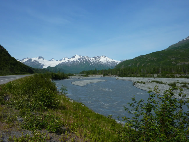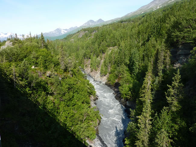 Fairbanks to Valdez, Alaska Canada HolidayThe Tonsina River cuts through canyons and from this bridge it is a long way down to the water below. You can see why it is a popular river for whitewater rafting. Have a look at more of the scenery in this area. Previous | Album | Next |