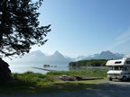 | Album 4 - Valdez is surrounded by snow-capped mountains and sited on a deep water fjord in Prince William Sound. The drive through the Chugach Mountains into town is very picturesque. We chose this 4th largest town in Alaska (population around 4000) to set up camp for 4th July celebrations. In summer the focus here is definitely on fishing but hikes and bikes and wildlife spotting are also popular. After a few days in Valdez we backtracked to Glennallen and then to Anchorage along the Richardson Highway. More glaciers and very impressive scenery! Unfortunately the smoke haze from fires up north had blown in and this hampered the photo taking. Missed the last web album? See Photos and Stories from Fairbanks to Valdez or use the ALASKA and CANADA map to select another. |