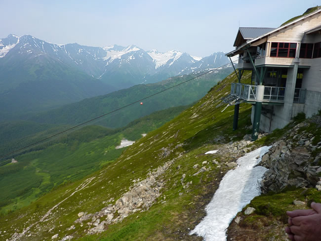 Valdez to Anchorage - AlaskaThe view from the tramway station is pretty impressive and we spotted a few marmot in the grass below. Locals tell us the reason it is so hazy is because of the fires up near Fairbanks that have been burning for a week. The smoke drifts straight down the valley to Anchorage and settles here for days. Previous | Album | Next |