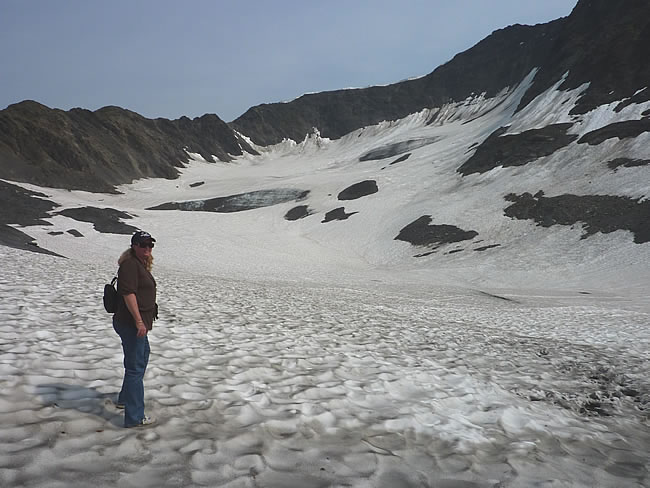 Valdez to Anchorage - AlaskaWe visited the historical display area where they also pay tribute to Olympic Gold Medalist Tommy Moe who trained at Alyeska Ski Resort. We then walked further up the track to the glacier. They say that in winter, if you stay at the Hotel Alyeska they will call and notify guests in the middle of the night when the Northern Lights are out. You don't see the 'lights' in summer so we may have to come back to see them in winter. Previous | Album | Next |