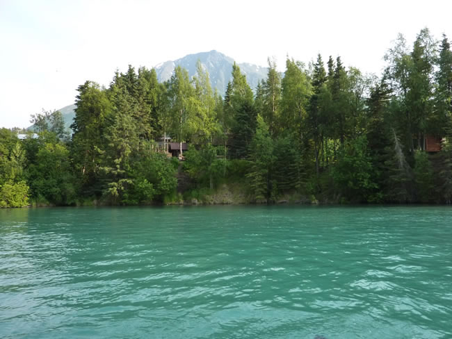 Anchorage to Kenai Peninsula - AlaskaAfter a very scenic drive along the shoreline of the Turnagain Arm then over the mountains and valleys of the Chugach Forest and through the Kenai Mountains we came to Copper Landing. This small town sits at the junction of the Kenai and Russian Rivers. It has one of the most scenic and relaxing landscapes and caters for tourist activities even if you arrive at 7pm it seems. Previous | Album | Next |