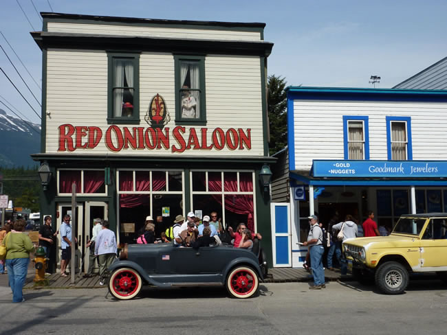 Cruise Skagway to Sitka- AlaskaBack in Skagway again we noticed there were jewellery stores everywhere. This one advertised Gold Nuggets. After wandering through a few and deciding we couldn't afford anything, we stopped for a drink at the Red Onion Saloon. Previous | Album | Next |