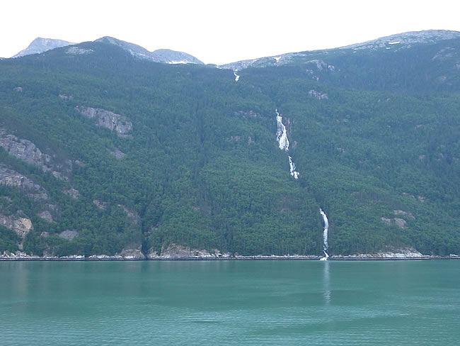 Cruise Skagway to Sitka- AlaskaWaterfalls cascaded down into the ocean not far from where we spotted some whales breaching. They were too quick to catch on camera unfortunately. After a 7pm dinner we played in the Black Jack tournament. Pete and I got knocked out in the 3rd round. We then went to the piano bar for a singalong and cheap cocktails - lots of fun! Previous | Album | Next |