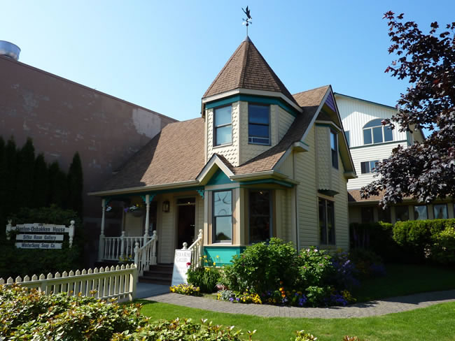 Cruise Skagway to Sitka- AlaskaWe bought a jade (Alaska's national stone) sea otter from the Sitka Rose Gallery. The gallery occupied this historical house which was built in 1895. After a couple of other jewellery purchases in the main street - amber earings (very common over here) and shell earings (similar to paua shell found in New Zealand) we jumped on the tender and headed back to the ship. Previous | Album | Next |