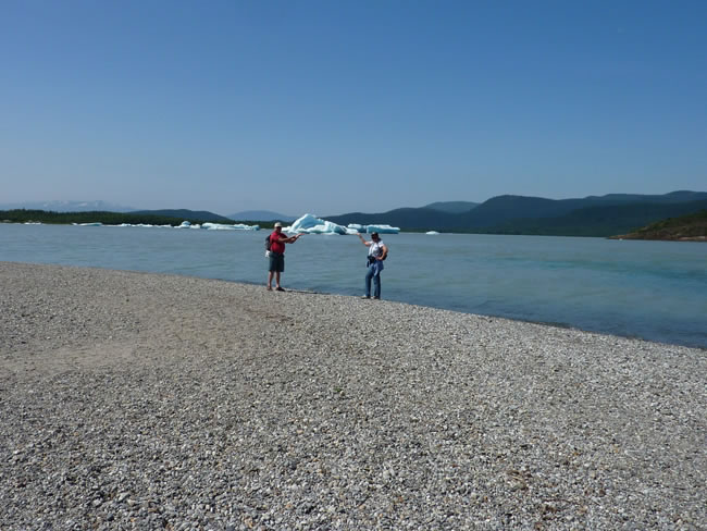 Cruise Juneau to Ketchikan - AlaskaThere are many blue icebergs floating on the milky glacial waters of Mendenhall Lake. We had to take the standard 'holding up the glaciers' photo of course! Very 'touristy' I know. We were lucky we were having great weather on this trip. Previous | Album | Next |