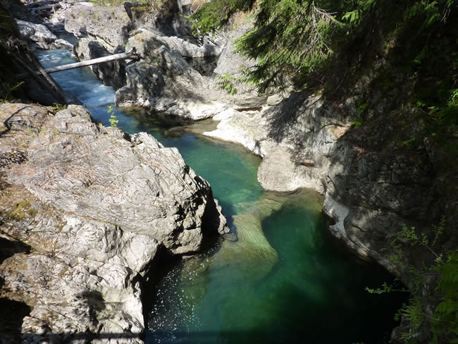 Nanaimo to Telegraph Cove - Vancouver IslandLittle Qualicum Falls Provincial Park was established in 1940 to protect the old growth Douglas-fir forest and the area around the river and the waterfalls. It is certainly worth saving. I loved the beautiful deep clear coloured pools that were dotted all along this rocky gorge. Previous | Album | Next |