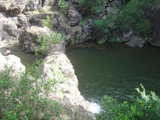 Here you can see a family with small kids swimming in the small pool above the falls when we were here two weeks before. It was quite a different sight after the flooding rains of the last few days.