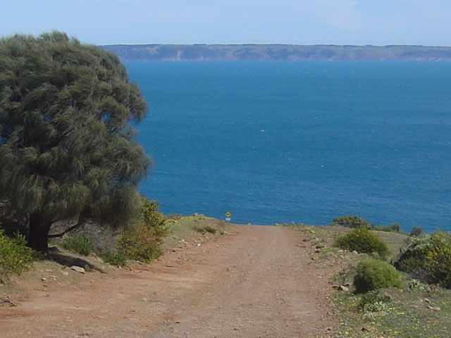 Deep Creek to Adelaide, South AustraliaIt looks a little scary and we hope there is somewhere to turn around if we need to!!! Kangaroo Island seems to be getting closer and Backstairs Passage narrower but we preferred to get there by ferry. Our 4WD can't swim. Previous | Album | Next |