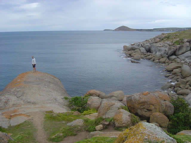 Deep Creek to Adelaide, South AustraliaIt is 700m across the causeway then a 1.9km round trip along an easy walking track to see all of Granite Island and its magnificent views. We didn't spot any whales and we needed to be here at night if we wanted to see the Little Penguins. Previous | Album | Next |
