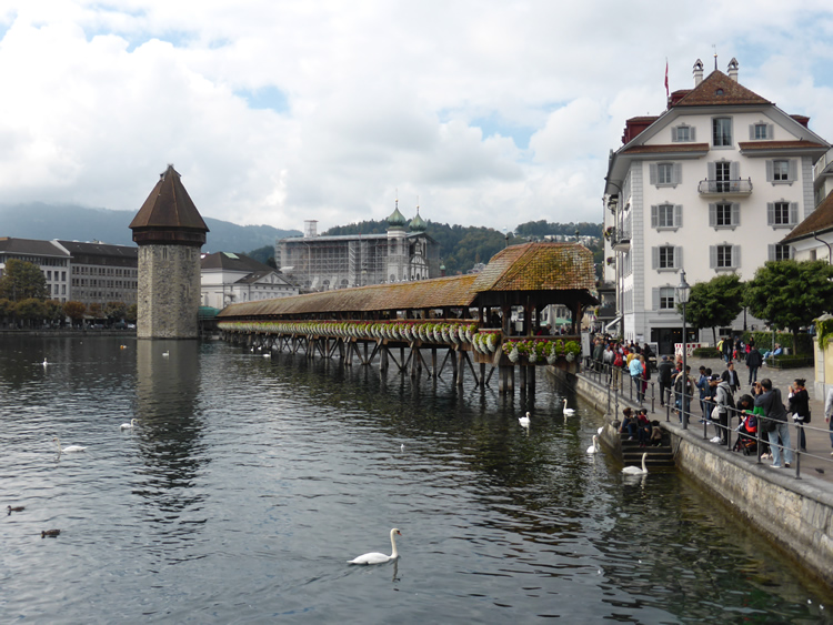UK and Europe Roadtrip - LucerneThe water tower and covered Kapellbrücke (Chapel Bridge) was built in 1333. It links the Old City to the right bank of the Reuss River. Select the photo below to see more of this beautiful lake and its ancient structures. Previous | Album | Next |