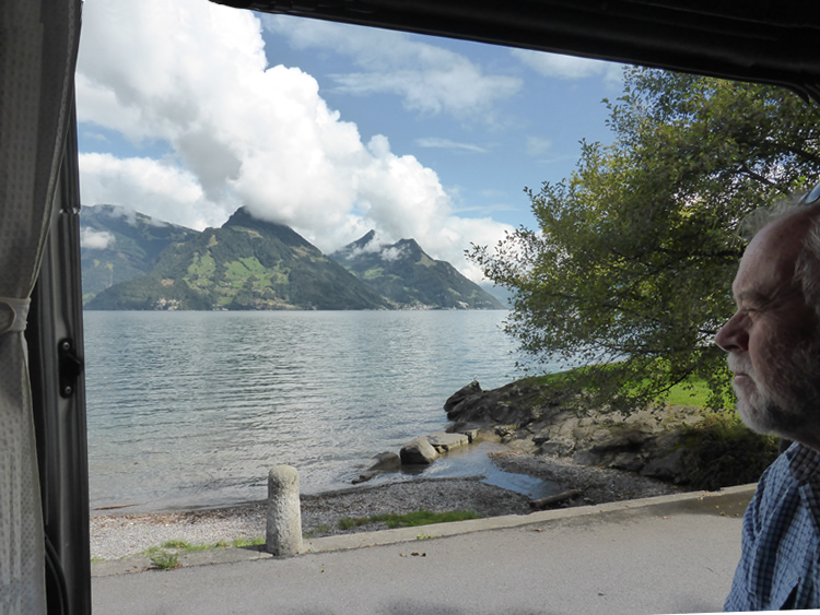 UK and Europe Roadtrip - Vierwaldstater LakeLake Lucerne is also known as Vierwaldstater in German. It translates as Lake of the four forested settlements, one being Lucerne. Parking the motorhome beside the lake we had brilliant views while we ate before continuing our drive. Previous | Album | Next |