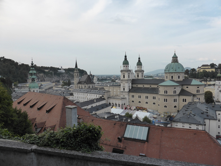 UK and Europe Roadtrip -After lunch we headed up the path that took us up Fortress Hill. The view here gives you a better idea of the layout of St Peters Abbey and the other churches and buildings in the Old Town. In the distance we can see the New Town across the Salzach River. Previous | Album | Next |