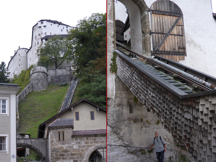UK and Europe Roadtrip - SalzburgAs we made our way back down Fortress Hill, 20 minutes walk, we noticed this entrance to Hohensalzburg Castle with some sort of rail. Maybe this is a funicular that would take about a minute. Missed that! Time to head off to our campsite for the night, 7km away. Select the photo below to see the 1 hour traffic jam we got caught up in at the German border where 100s of refugees had gathered. Previous | Album | Next |