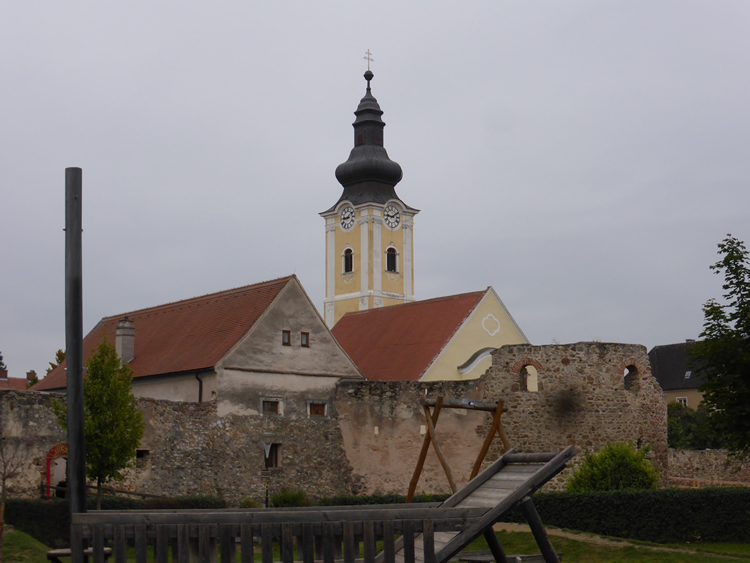 UK and Europe Roadtrip - Mautern to KremsWe spotted the ruins of this ancient castle wall and Mautern Church spire behind it as we entered the town of Mautern am der Donau (on the Danube). Select the photo below to see more. Previous | Album | Next |