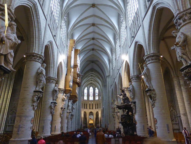 UK and Europe Roadtrip - BrusselsThis Brussels Cathedral took over 300 years to complete. The twelve columns that stand either side of the nave support statues of the 12 apostles that date back to the 1600s. On the outside, the cathedral is built entirely of stone from a local quarry The gothic-style towers are 64m high. Previous | Album | Next |