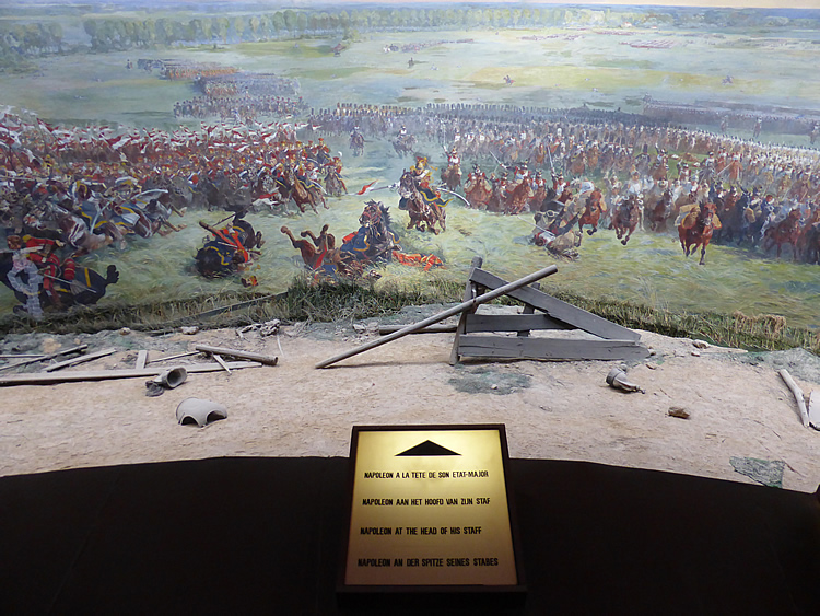 UK and Europe Roadtrip - WaterlooInside the museum complex there is a Panorama depicting the Battle of Waterloo. This particular section has Napoleon leading his army in the battle across Hougoumont farm. His defeat marked the end of his reign and of France’s domination in Europe. Select the photo below to see a 'cartoon' map of the warring countries at that time. Previous | Album | Next |