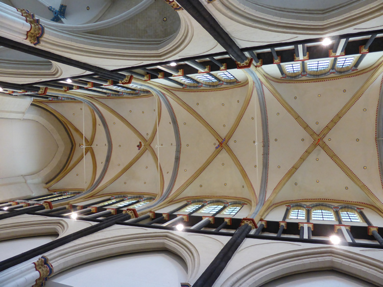 UK and Europe Roadtrip - GhentThe ceiling of St Nicholas Church is beautiful. The building gradually deteriorated over the centuries until the 1900s when much renovation work was carried out. Select the photo below to see what is going on in this section of the church - a market? That's unexpected! Previous | Album | Next |