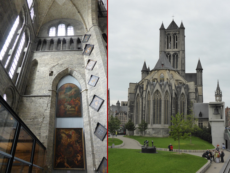 UK and Europe Roadtrip - GhentYou can see left of the artwork (left photo) that there is still a lot of restoration work to be done. As we left St Nicholas Church we noticed the large bell by the gardens (right). The church tower was the site of the town bells until The Belfry of Ghent was built. This bell is known as ‘The Triumphant’ or ‘The Roeland’, after the first large bell at The Belfry. The bell cracked in 1914, restored then displayed here. Previous | Album | Next |