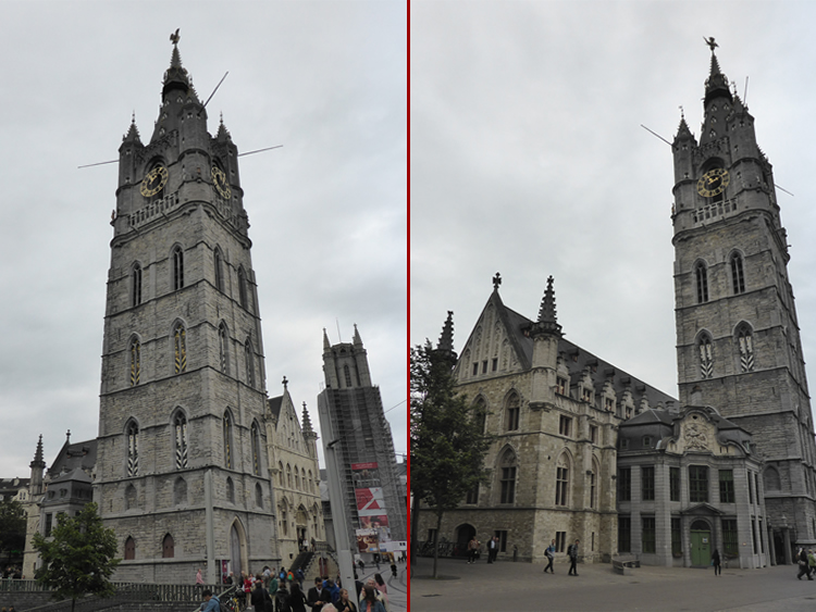 UK and Europe Roadtrip - GhentThe 91m tall Belfry of Ghent is the highest of the three medieval towers overlooking the old city of Ghent and has been used as a watchtower as well as a bell tower. The other two towers are at Saint Nicholas' Church and Saint Bavo Cathedral that you see in the background (left photo) under restoration. The Belfry was built in the 1300s and a gilded dragon sits at the top overlooking the city since 1377. Select the photo below to see where we went next, the town hall. Previous | Album | Next |