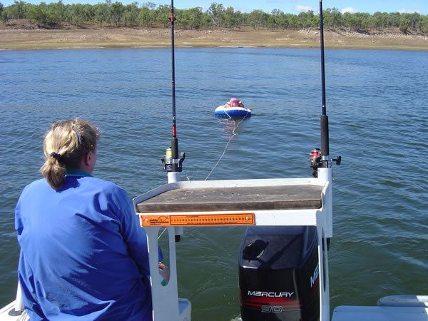 Boondooma Dam, Lake and Campgrounds, QueenslandThe kids are more interested in being towed behind the boat and the dam is big enough to find a quiet spot away from everyone else. The water was cool in April but not too cold. The temperatures in the daytime were very comfortable but you needed a jumper and jeans at night around the fire. I imagine at Xmas it would be VERY hot at the lakeside campsite as there are few shady trees. Previous | Album | Next |